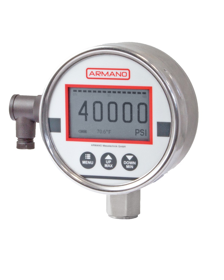 The device has an easy-to-read, 5-digit indication for the operating pressure as well as a bargraph indication for quick changes. Furthermore, the temperature of the measuring cell and the set pressure unit are displayed.