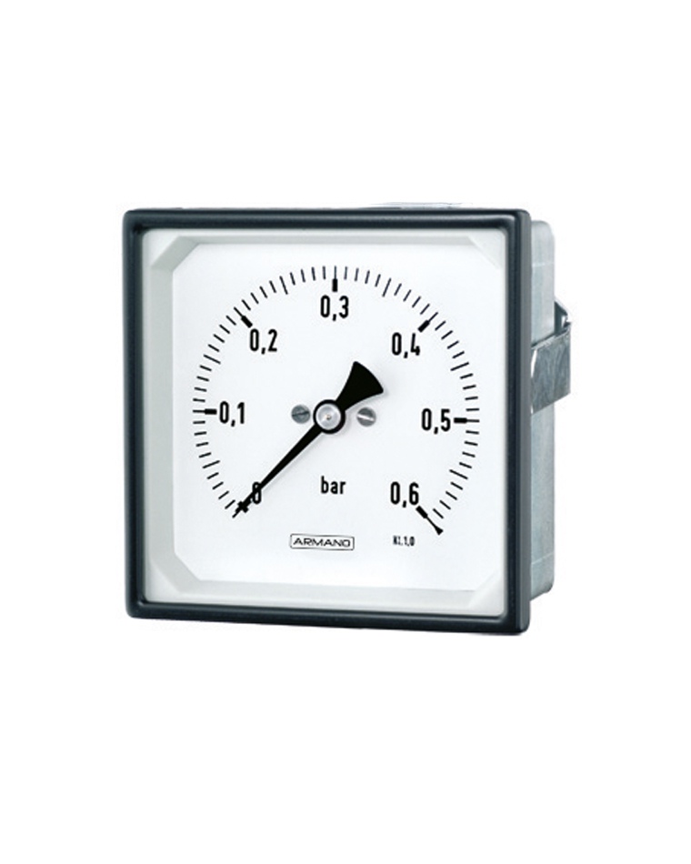 1500 Bourdon tube pressure gauges RQS 96-1 0.6 bar square case, front narrow rim black, mechanical pressure measuring instruments, pressure metrology by ARMANO